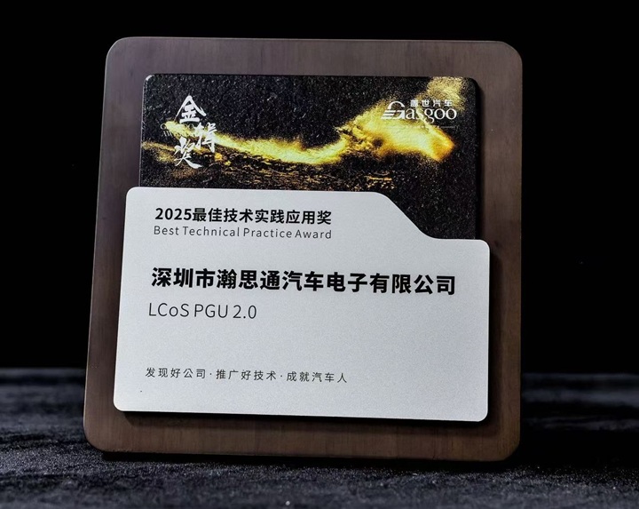 10月30日,由盖世汽车主办的2025第七届“金辑奖”颁奖盛典在上海圆满落幕。瀚思通凭借旗下光波导专用LCoS PGU 2.0在AR HUD领域的卓越技术创新与前瞻性应用实践,荣获“2025最佳技术实践应用奖”。